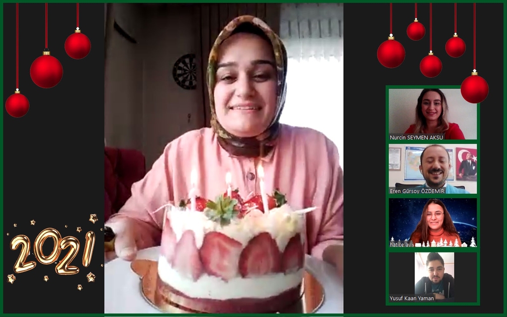 Bölüm hocalarımız ve öğrencilerimizle etkinlik düzenleyerek 2021 yılı için sağlık, mutluluk ve başarı getirsin temennilerinde bulunduk. 1.Sınıf öğrencilerimizden Sündüs Üstünyer'e yapmış olduğu sürprizden dolayı da teşekkür ederiz.